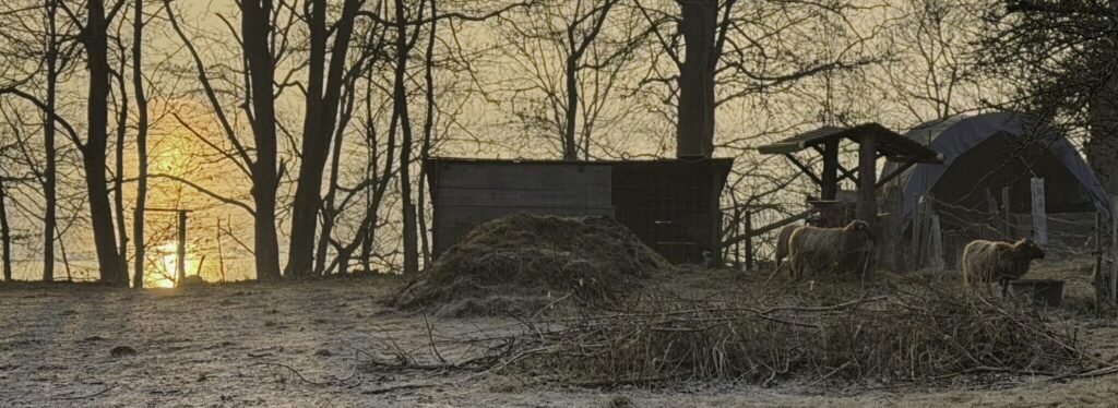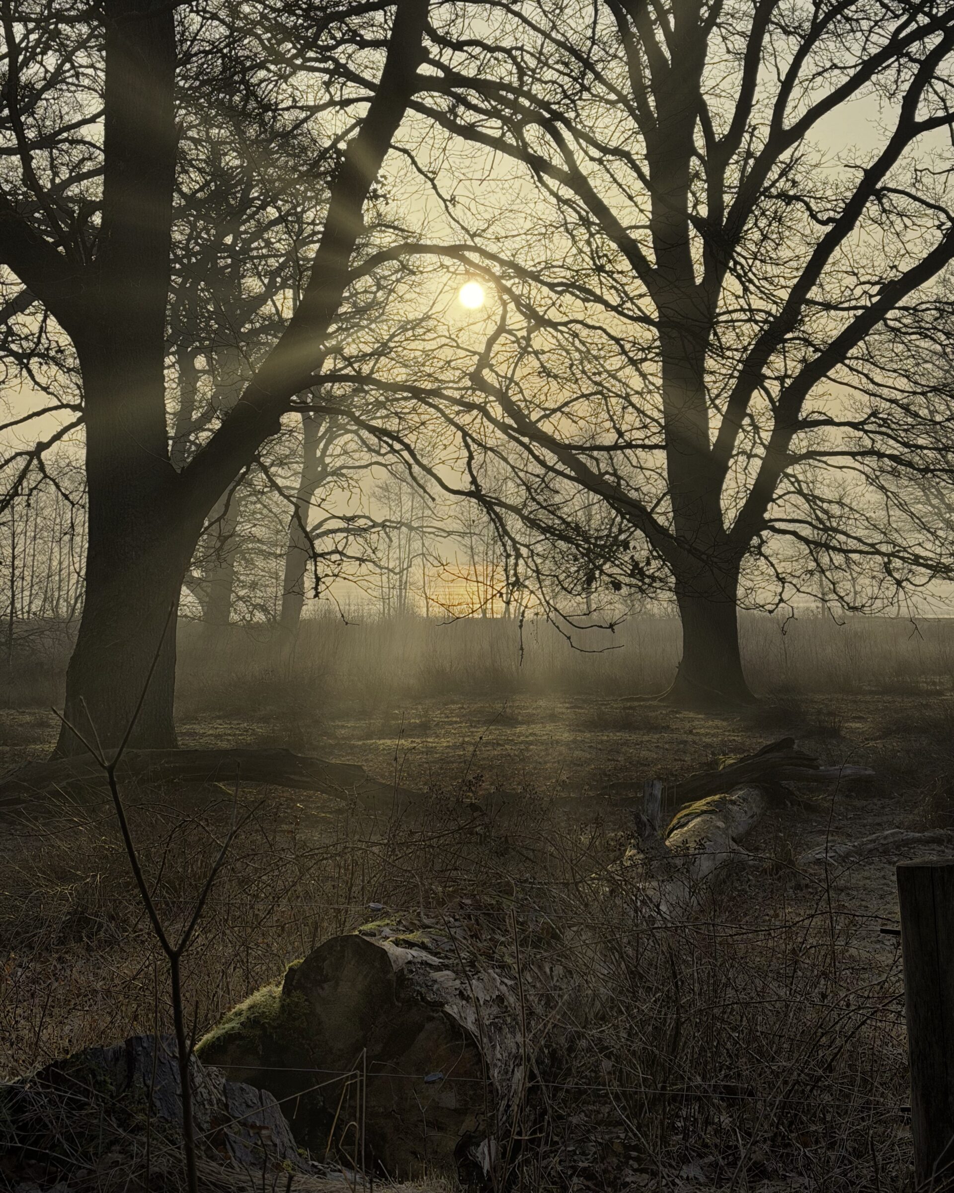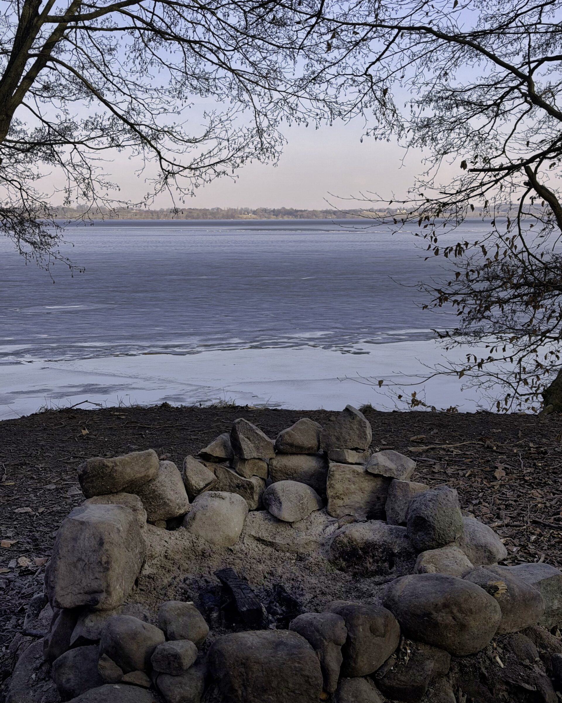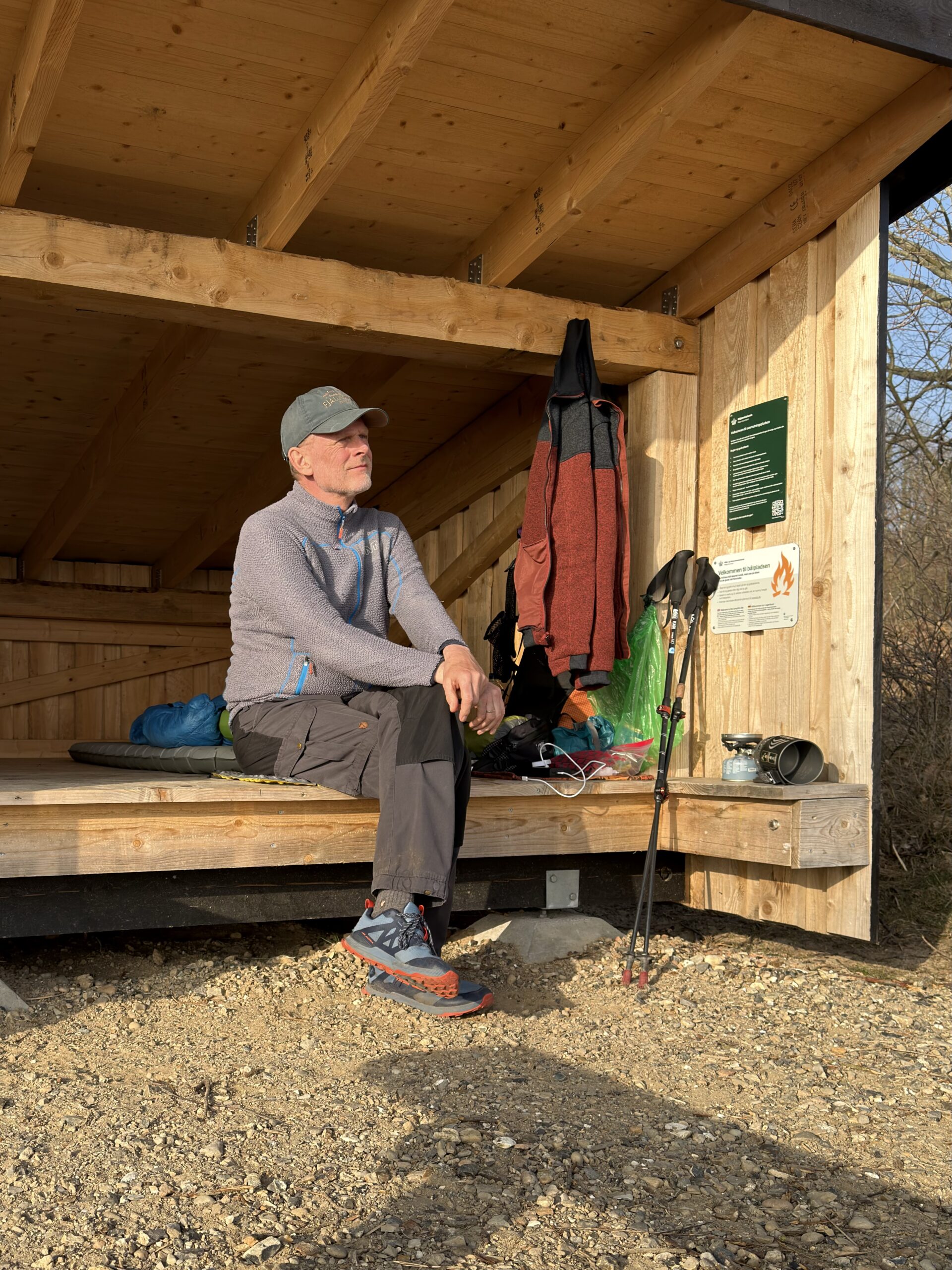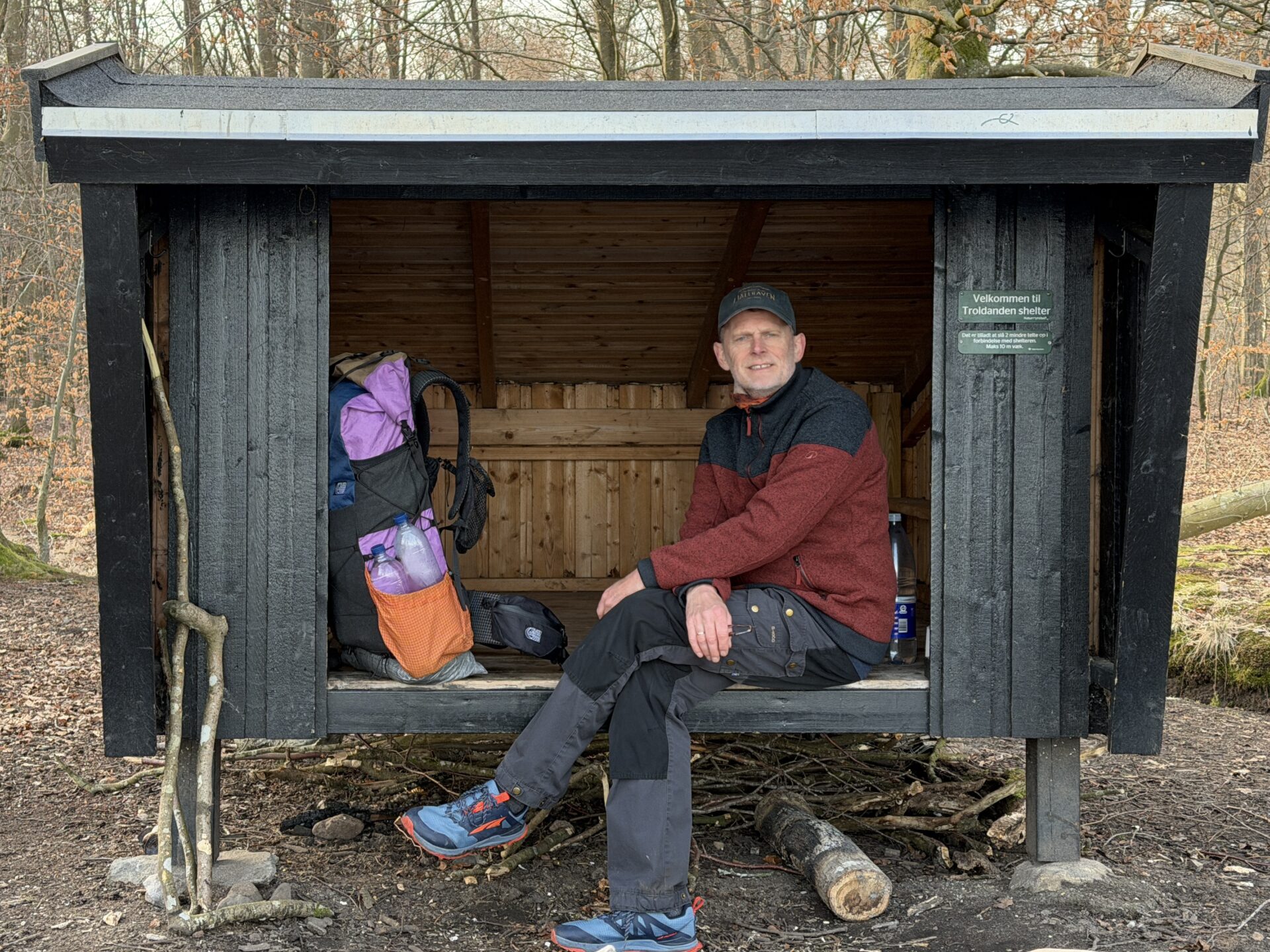 Videre gik turen mod Esrum Kloster. At ankomme til de historiske bygninger føles som at træde direkte tilbage i tiden. Efter en lang dag med mange kilometer i benene slog jeg lejr i et shelter ved Esrum Sø. Der var en helt særlig ro over landskabet, da der stadig lå is på søen, og i stedet for bølgernes skvulpen var det den frostklare stilhed, der fulgte mig i søvne.