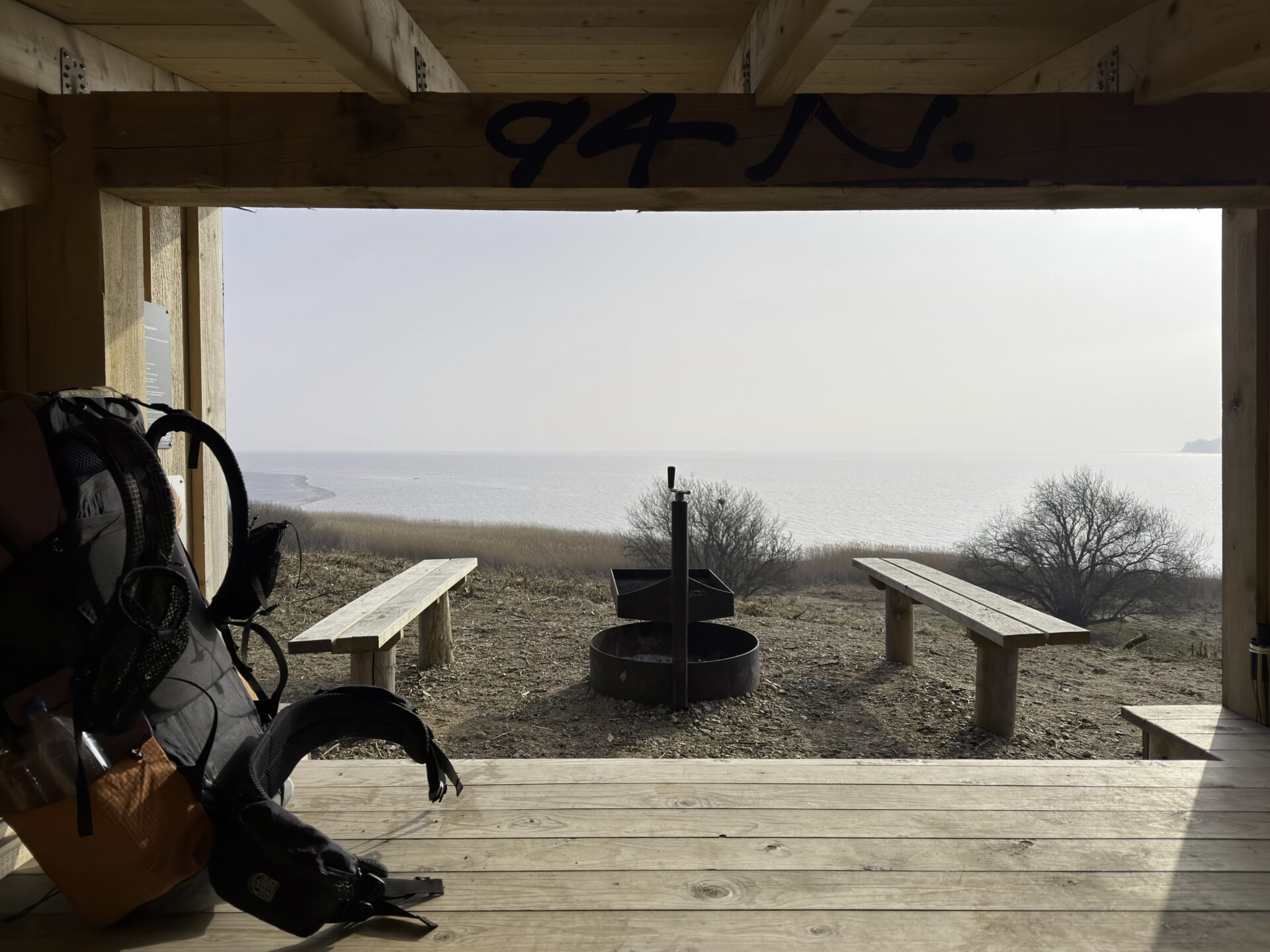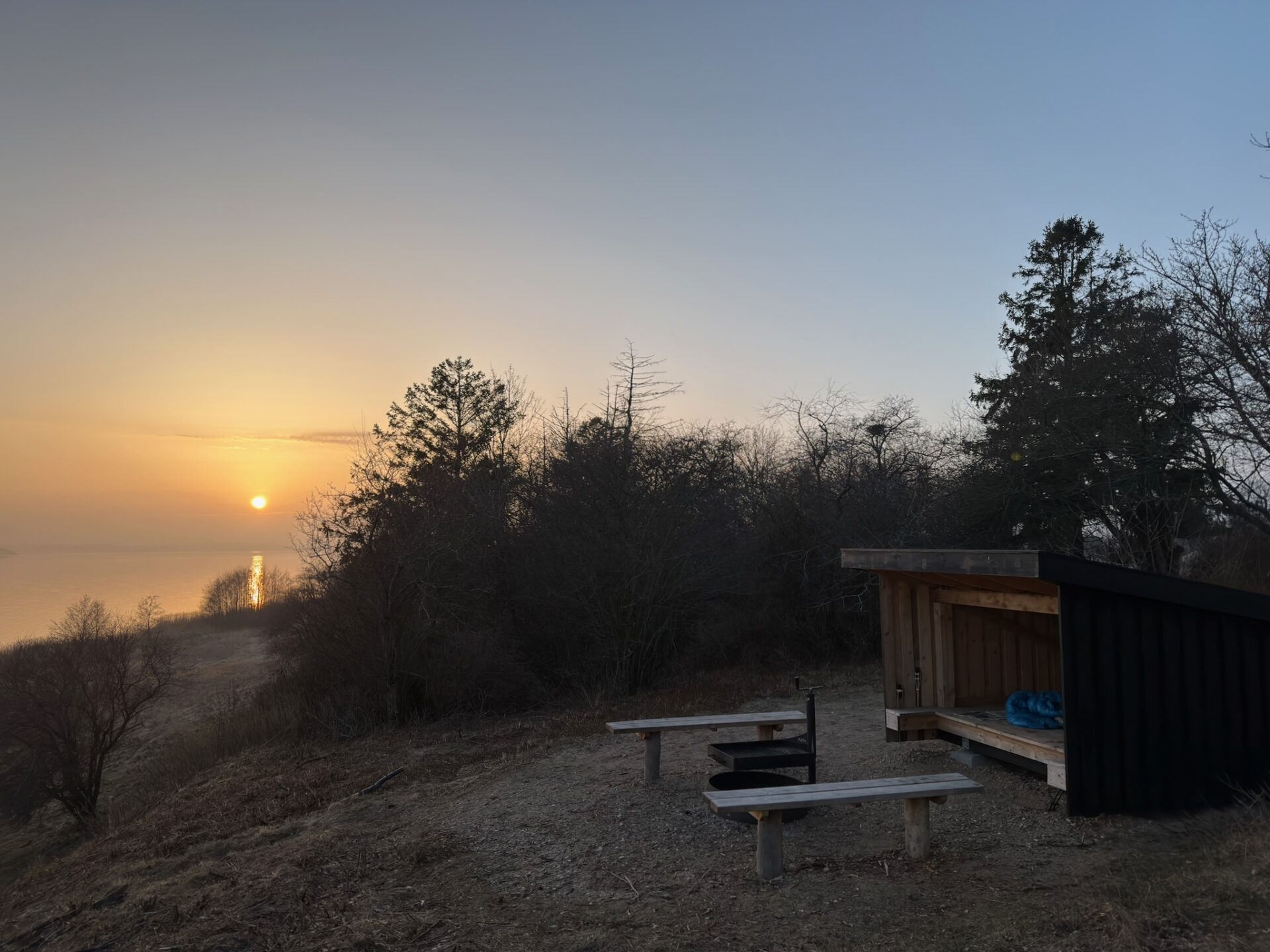 Natten blev tilbragt i Ramløse med den mest fantastiske udsigt over Arresø. At se solen gå ned over vandet fra shelterpladsen var uden tvivl et af turens højdepunkter.
